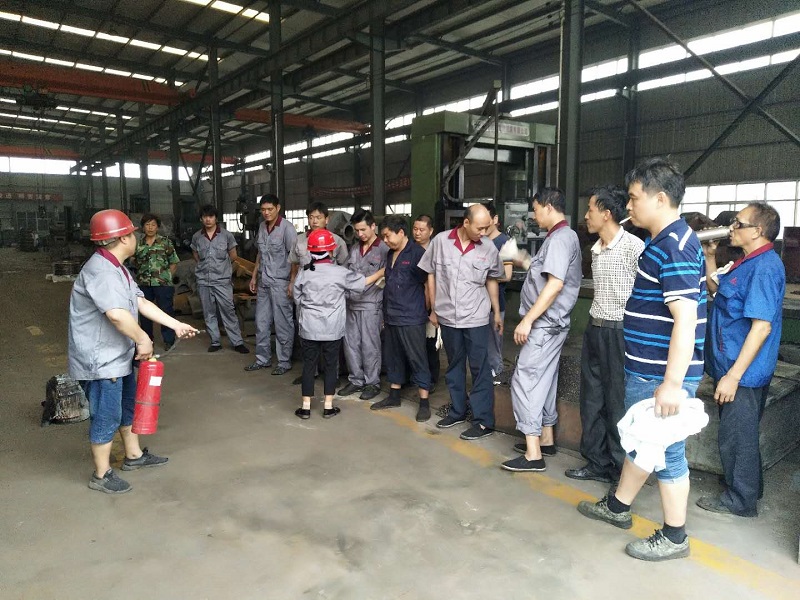 4、安全負(fù)責(zé)人和車(chē)間領(lǐng)導(dǎo)一同為大家展示發(fā)生火災(zāi)時(shí)滅火器演示